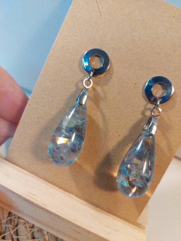 Oorbellen rvs zilver met hanger met zilveren flakes