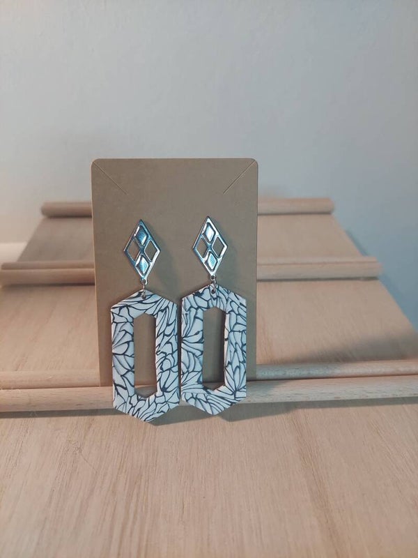 Oorbellen RVS zilverkleurig met zwart witte hanger